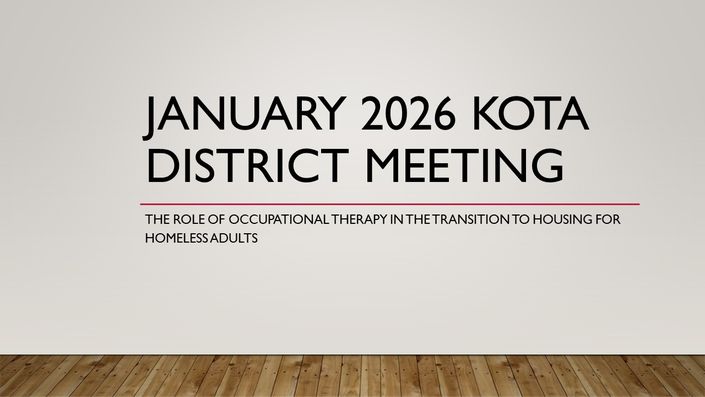 Zoom District Meeting- January 2026: The Role of Occupational Therapy in the Transition to Housing for Homeless Adults